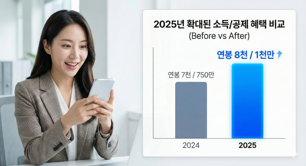 | 소득 기준 | 총급여 7,000만원 이하 | 8,000만원 이하 | +1,000만원 |