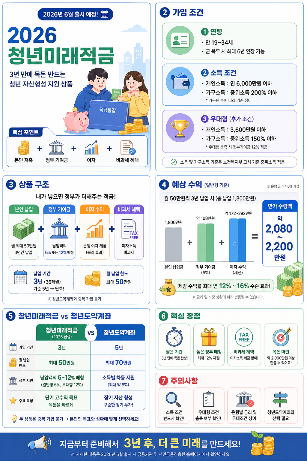 2026년 6월 출시 청년미래적금의 가입 조건, 일반형·우대형 차이, 정부 기여금, 청년도약계좌와의 차이까지 한 번에 정리했습니다.